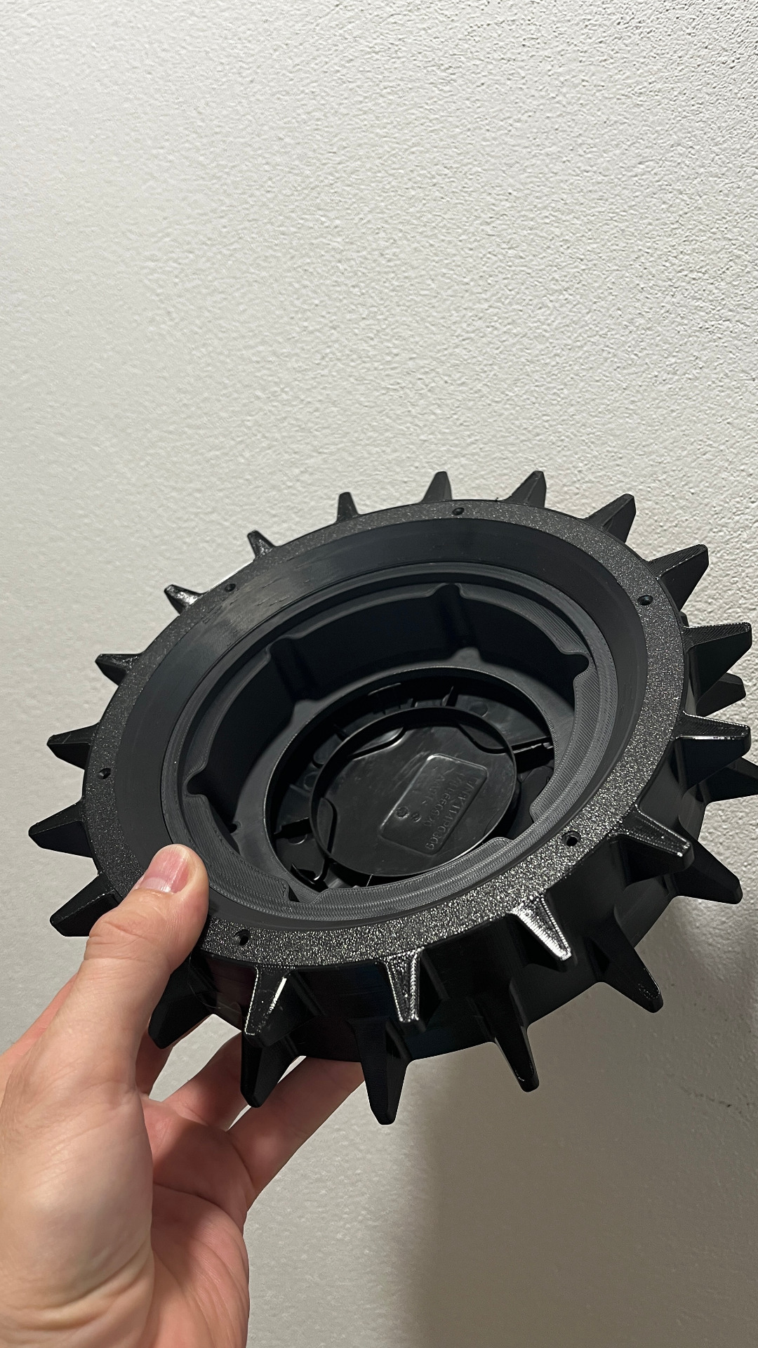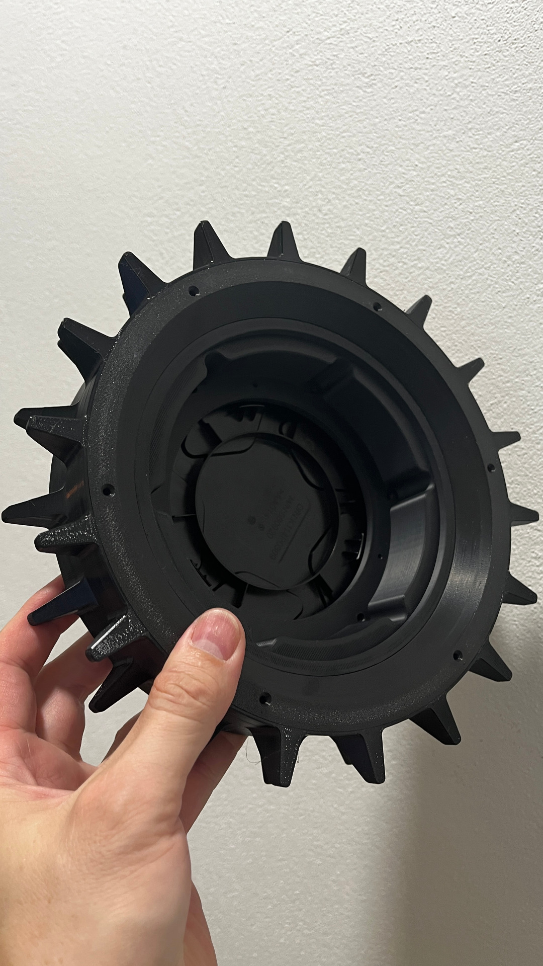 – Stačí odepnout plastovou poklici, odšroubovat staré kolečko, připevnit nové a nacvaknout původní poklici zpět. Hotovo za pár